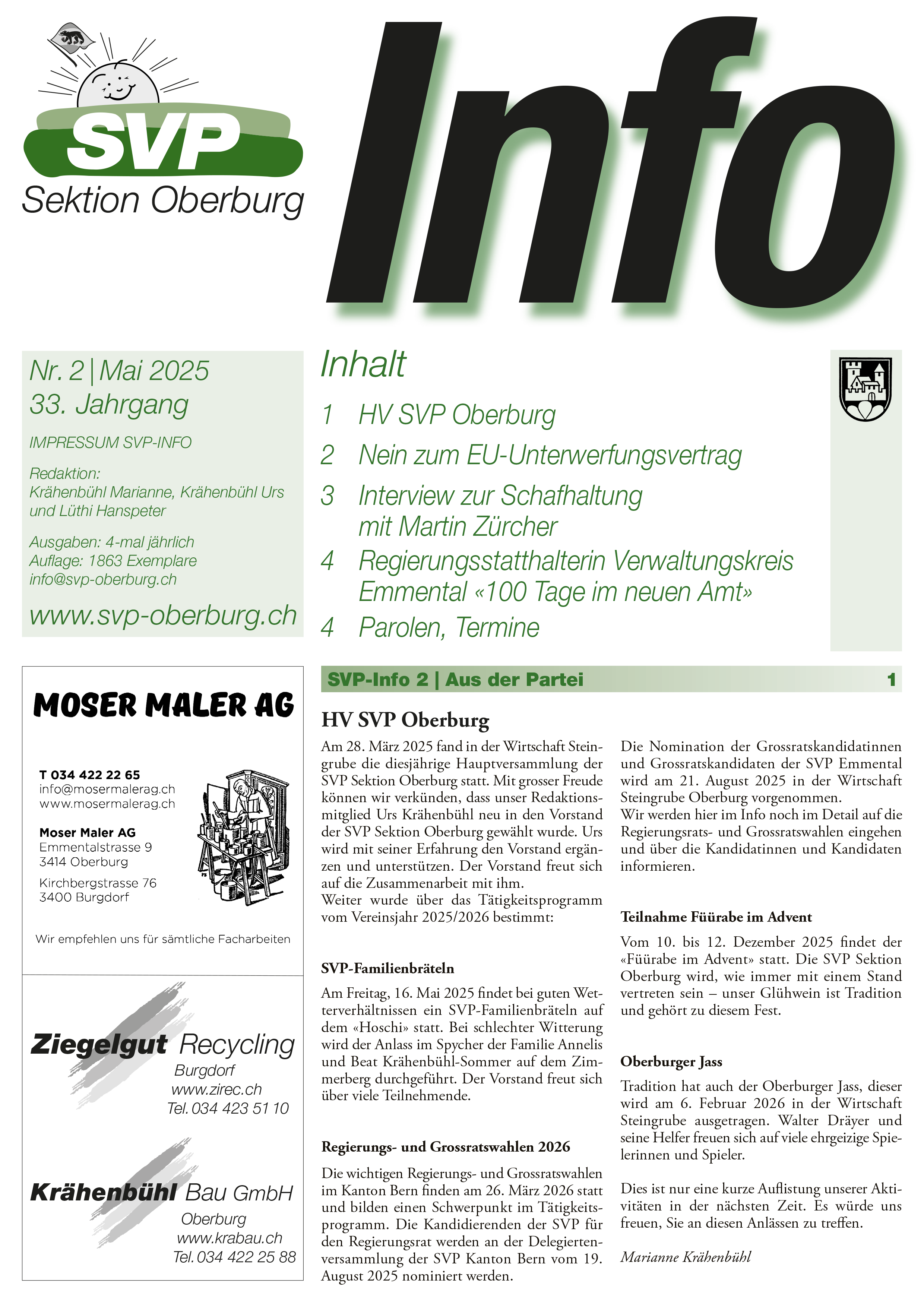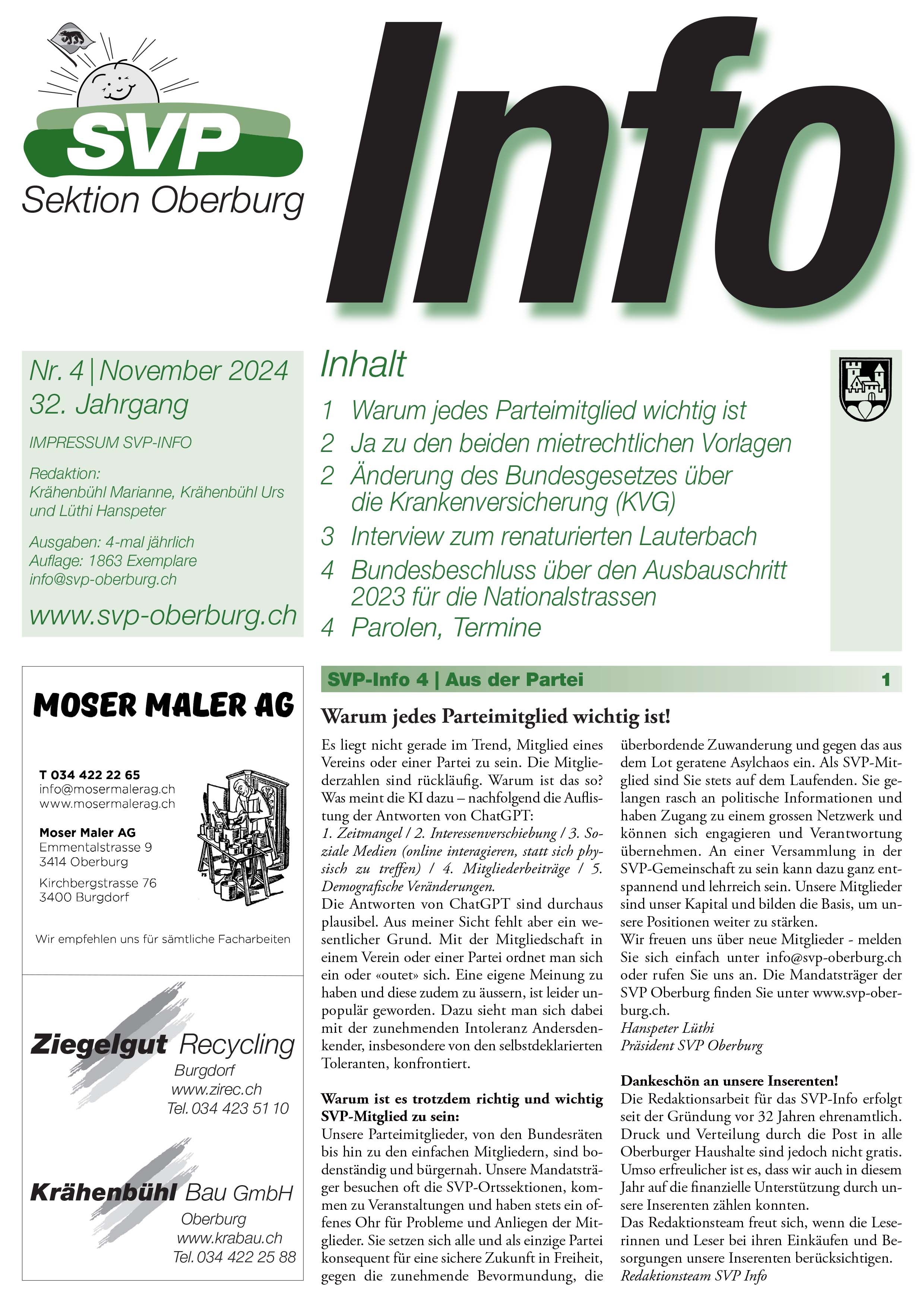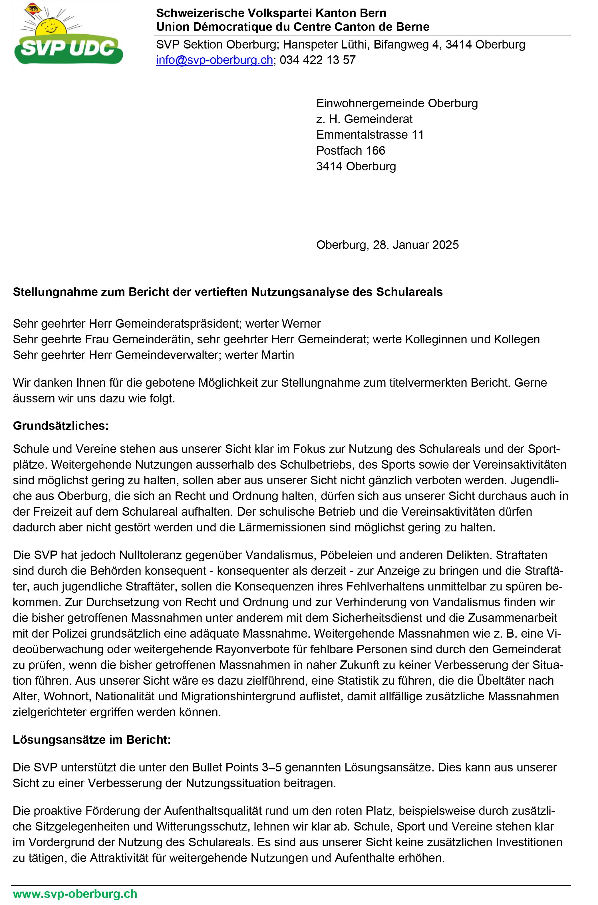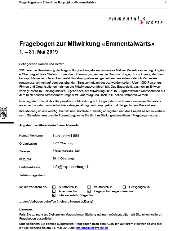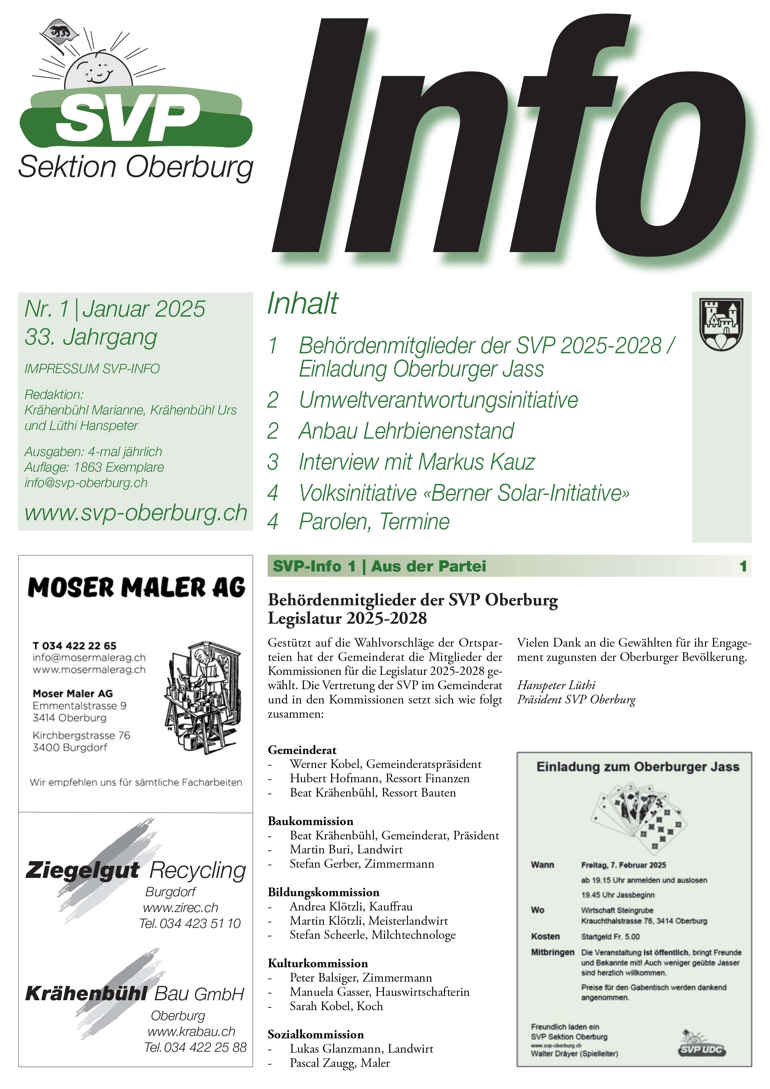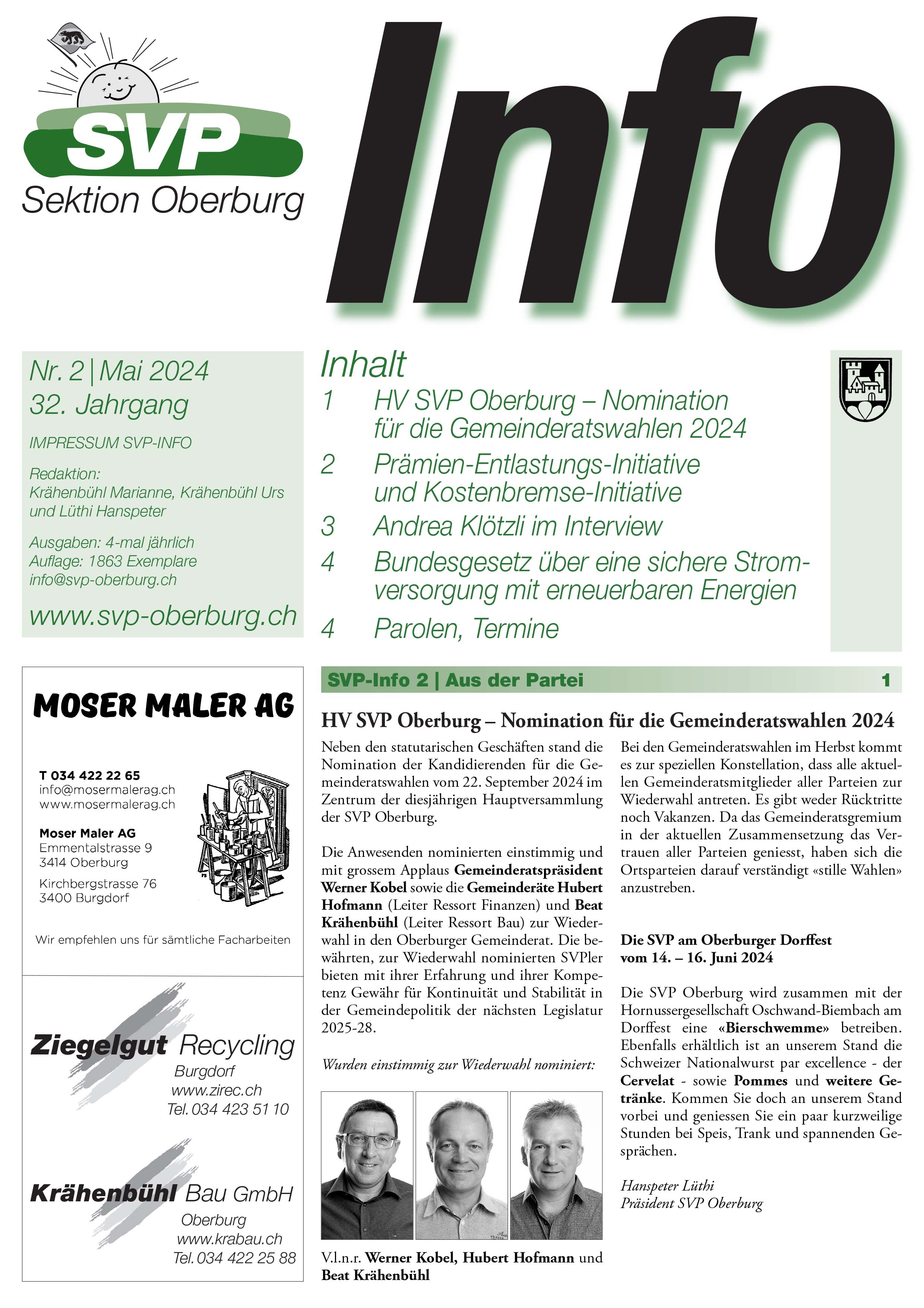 Unsere Forderung nach der Ausgestaltung einer fortschrittlichen, effizienten und bürgernahen Gemeinde sind für die SVP Oberburg nicht nur Leitsätze, sondern wir setzen diese Ziele mit Ihrer Unterstützung konsequent um.