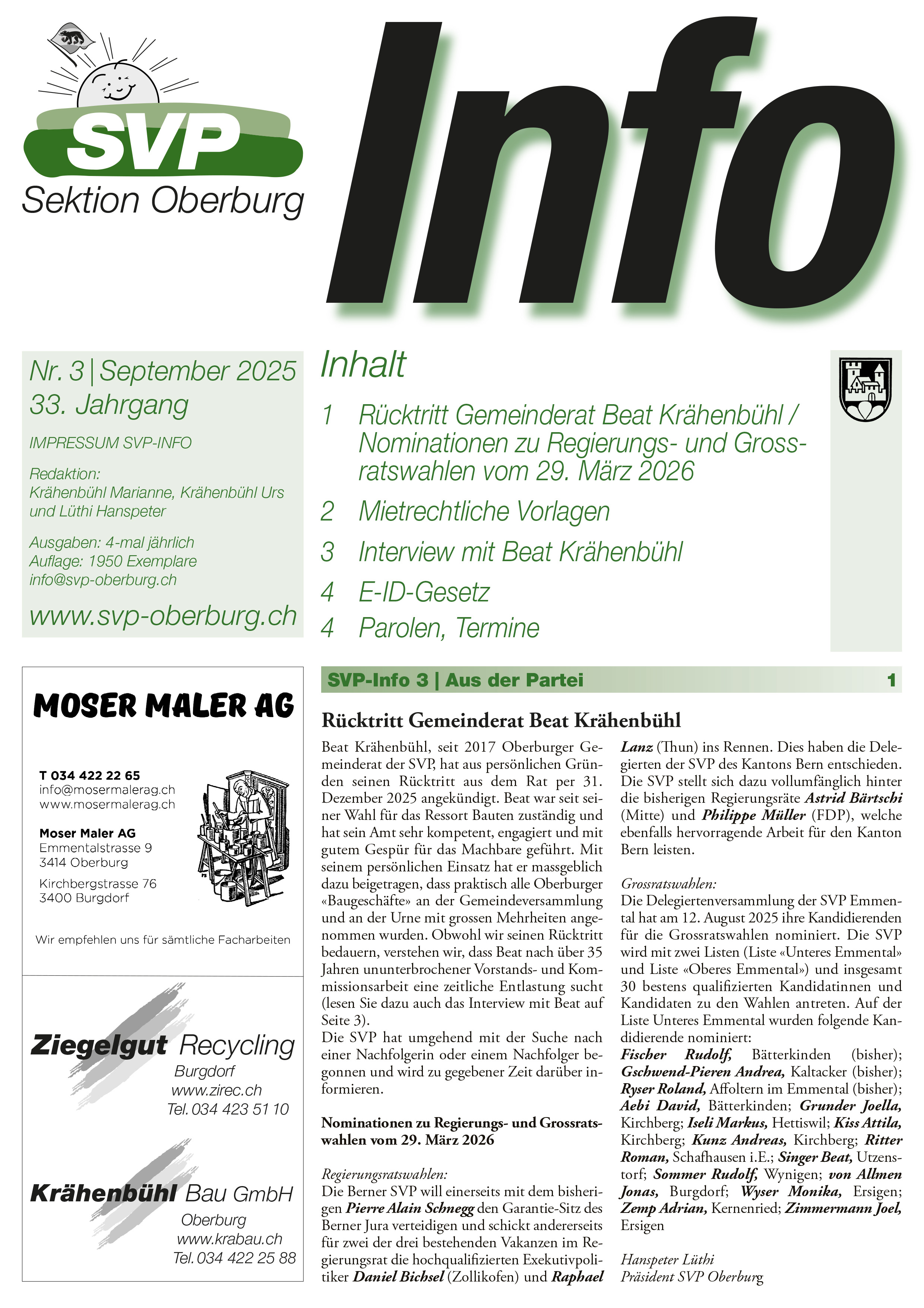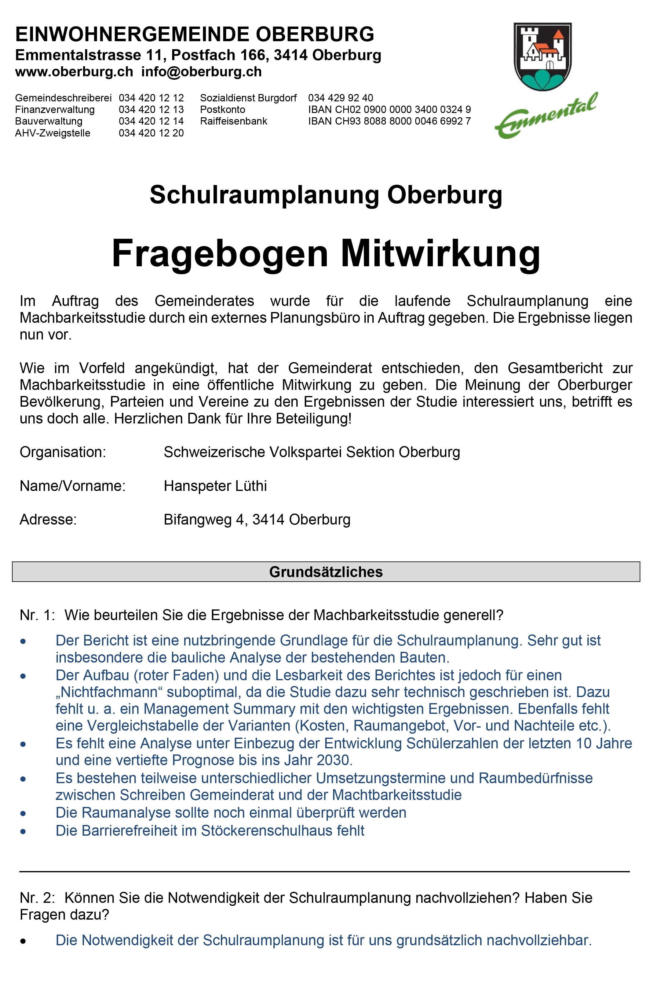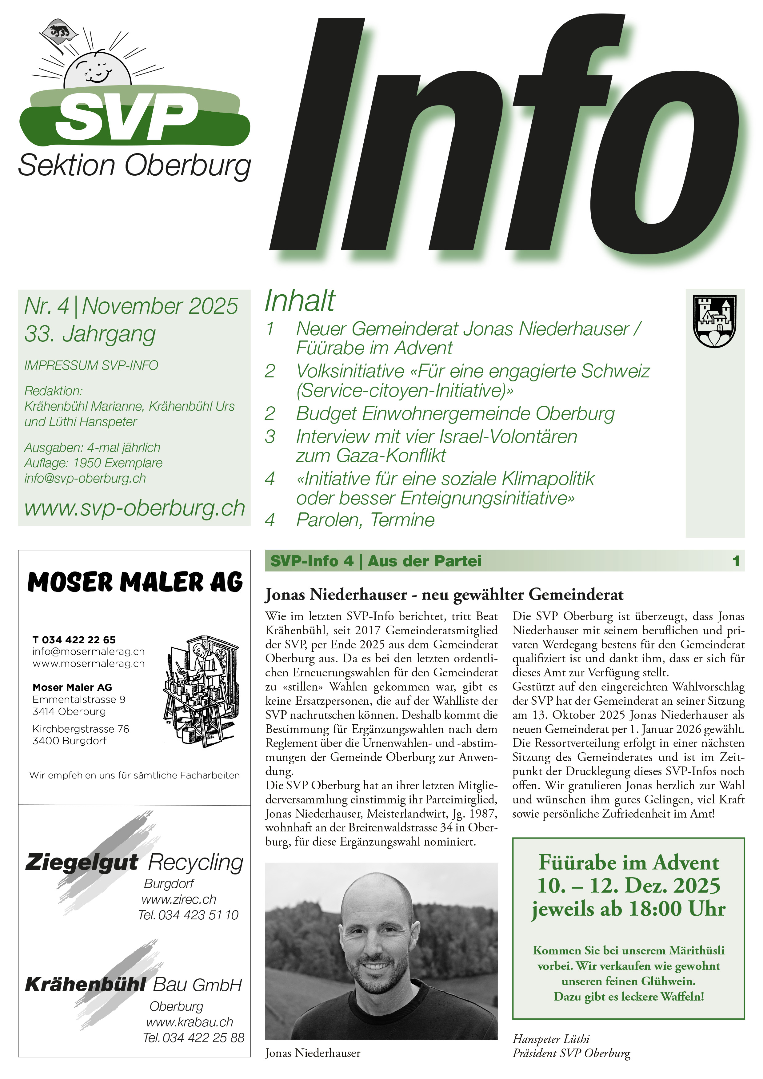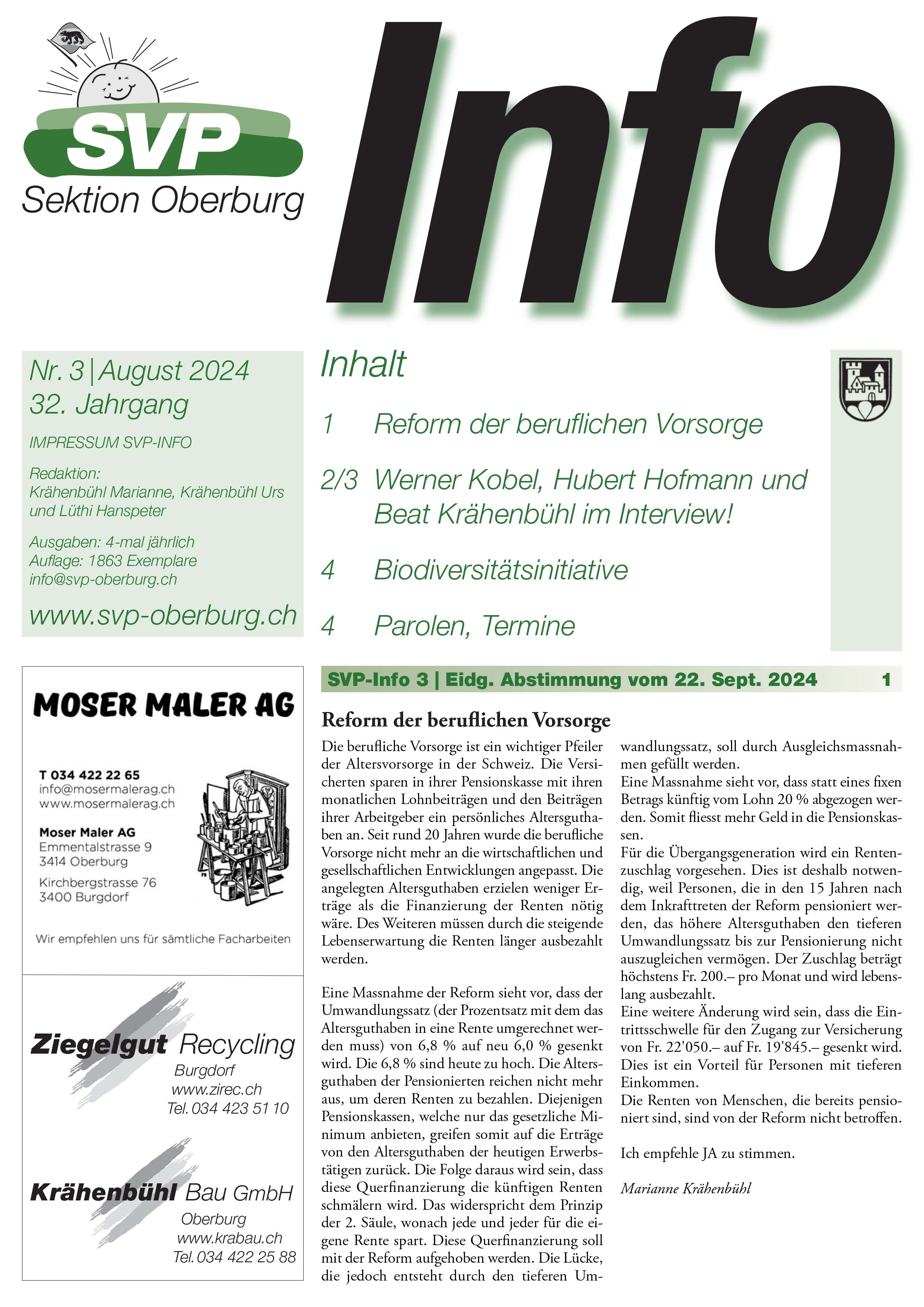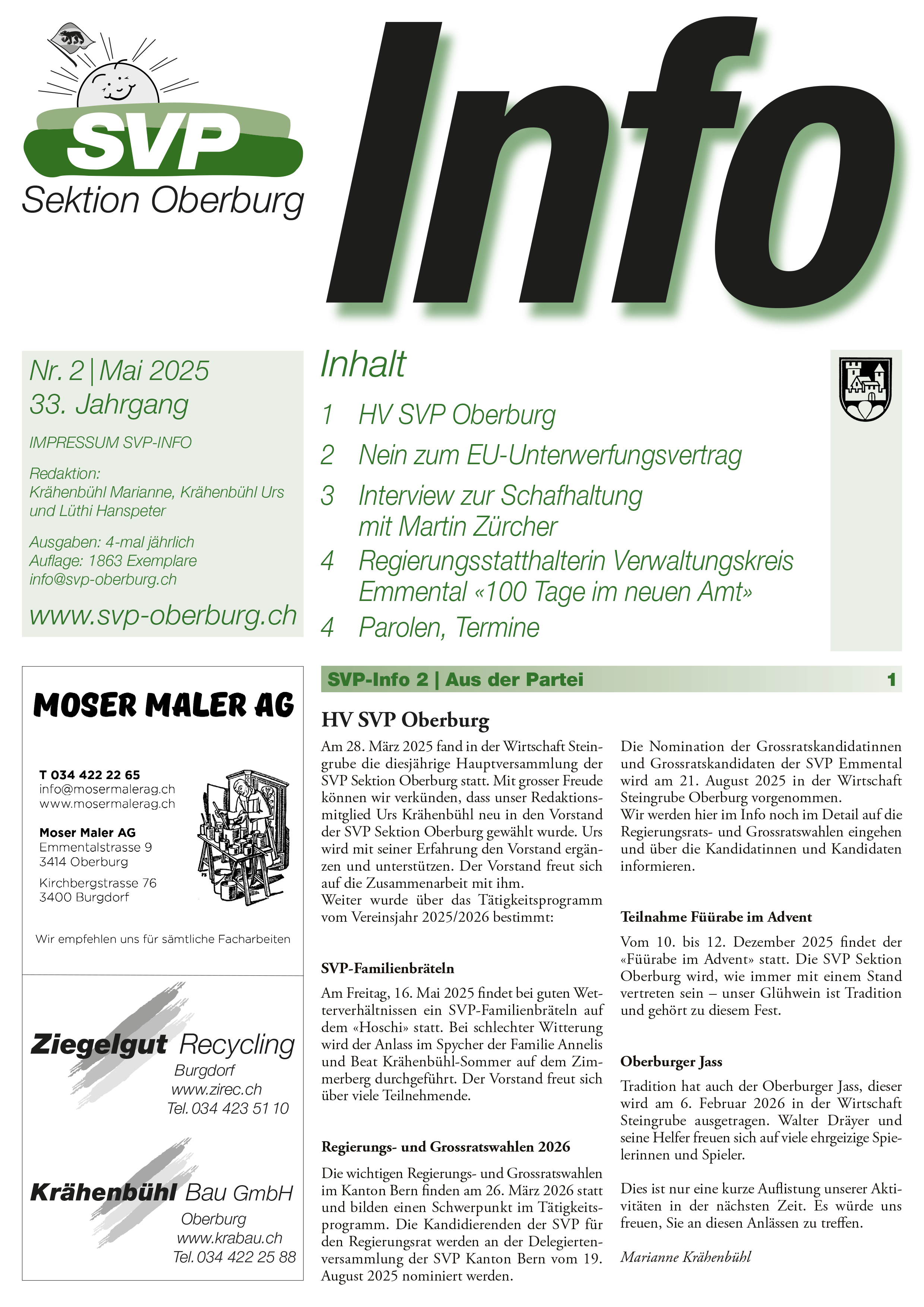 Unsere Forderung nach der Ausgestaltung einer fortschrittlichen, effizienten und bürgernahen Gemeinde sind für die SVP Oberburg nicht nur Leitsätze, sondern wir setzen diese Ziele mit Ihrer Unterstützung konsequent um.